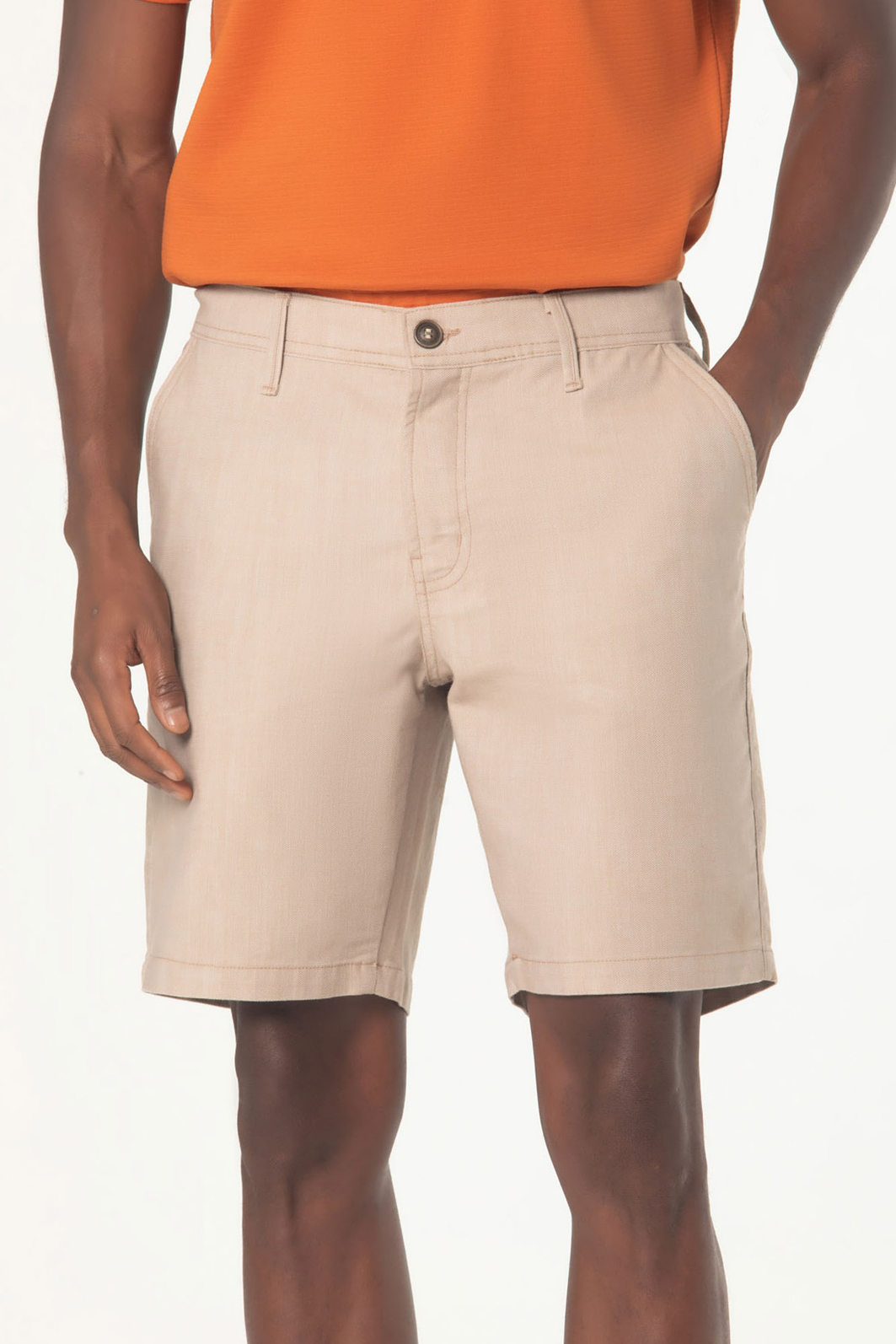 Bermuda Dlz APVE Aplicação Metal Escrita Bolso Faca Bege