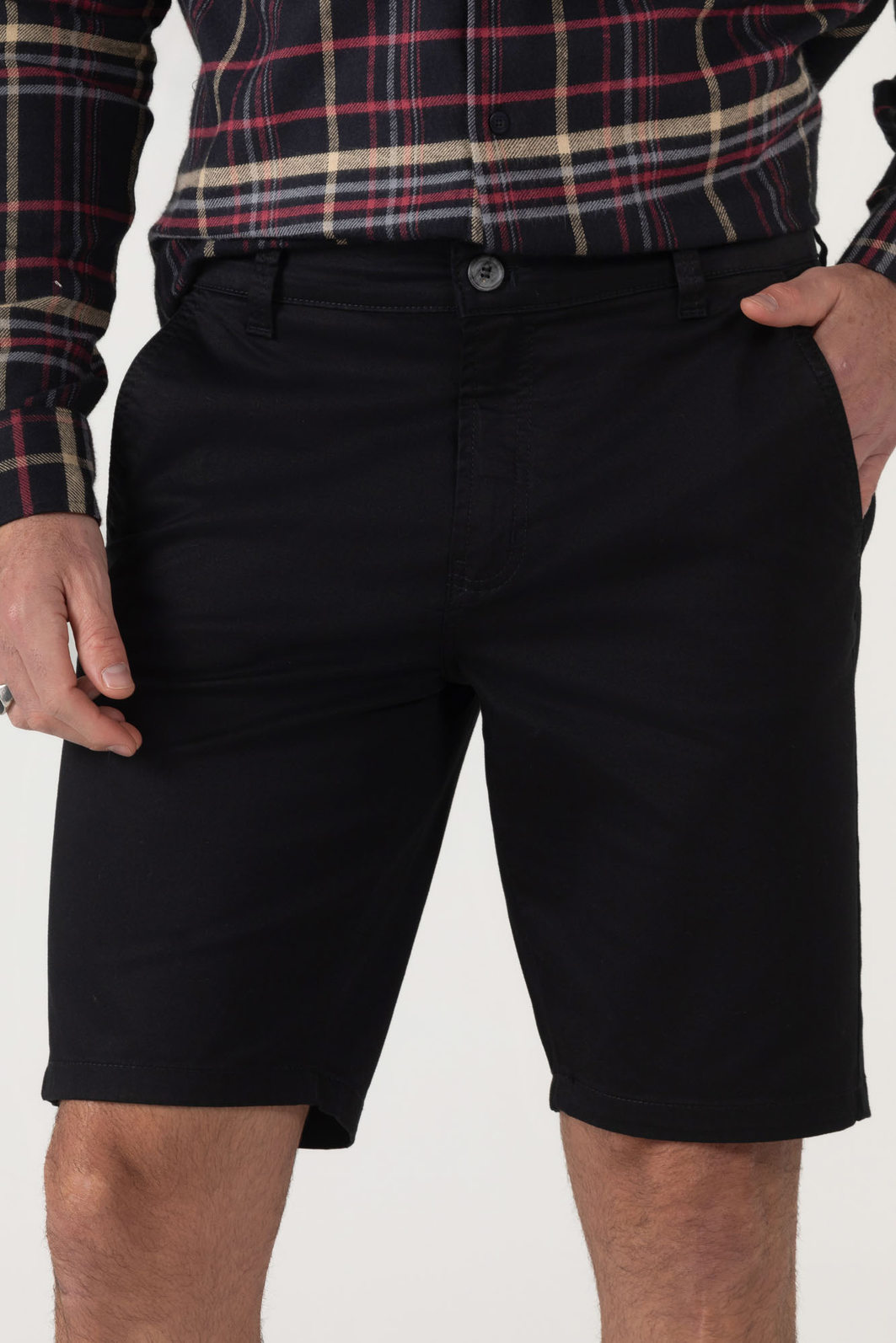 AdicionarBermuda Dlz Slim Chino Algodão Bolso Faca Aplicação Logo Preto