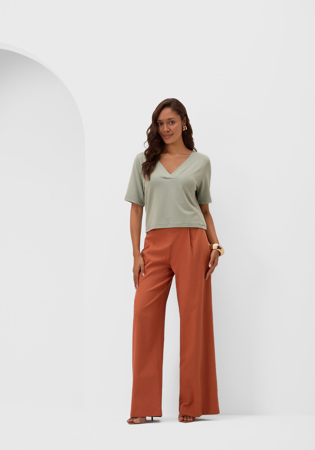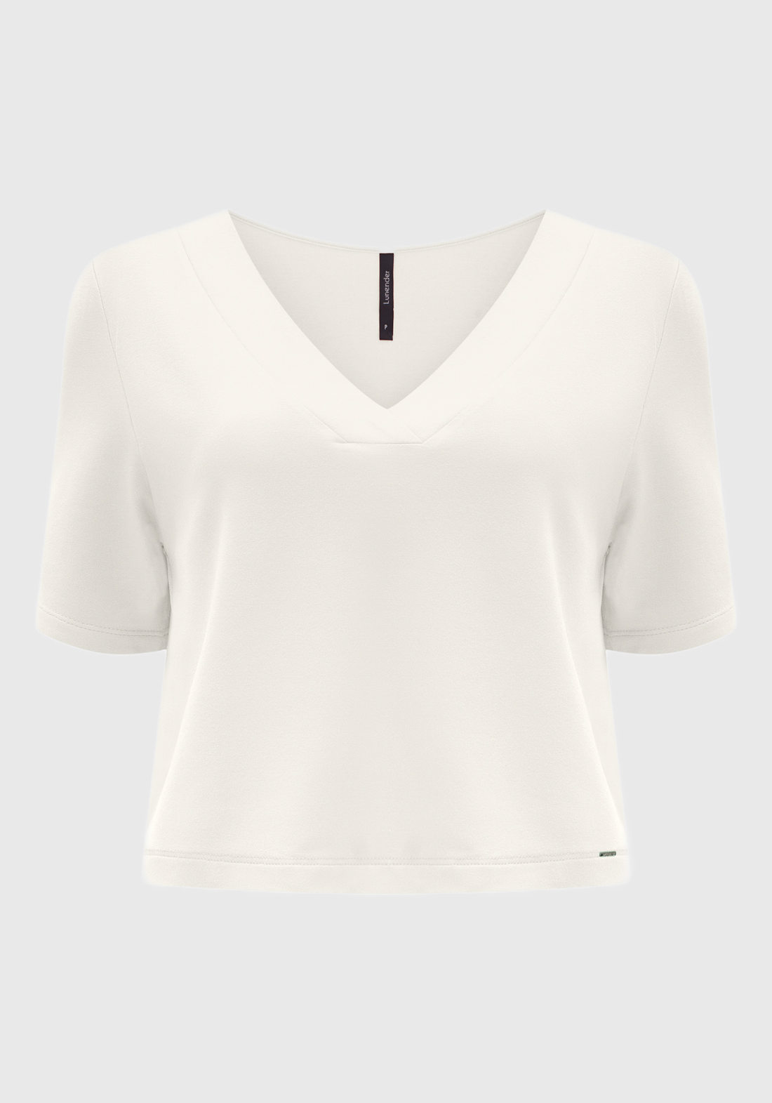 AdicionarBlusa Cropped Lunender Viscose Elastano Decote V Manga Curta Lisa Off White