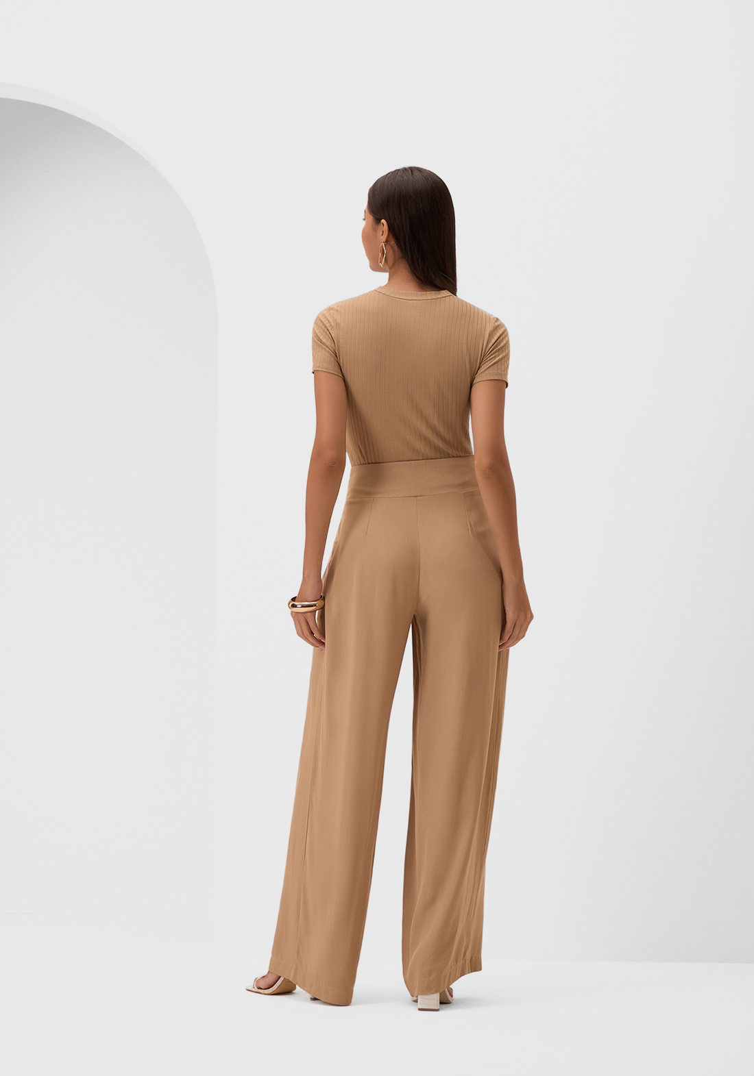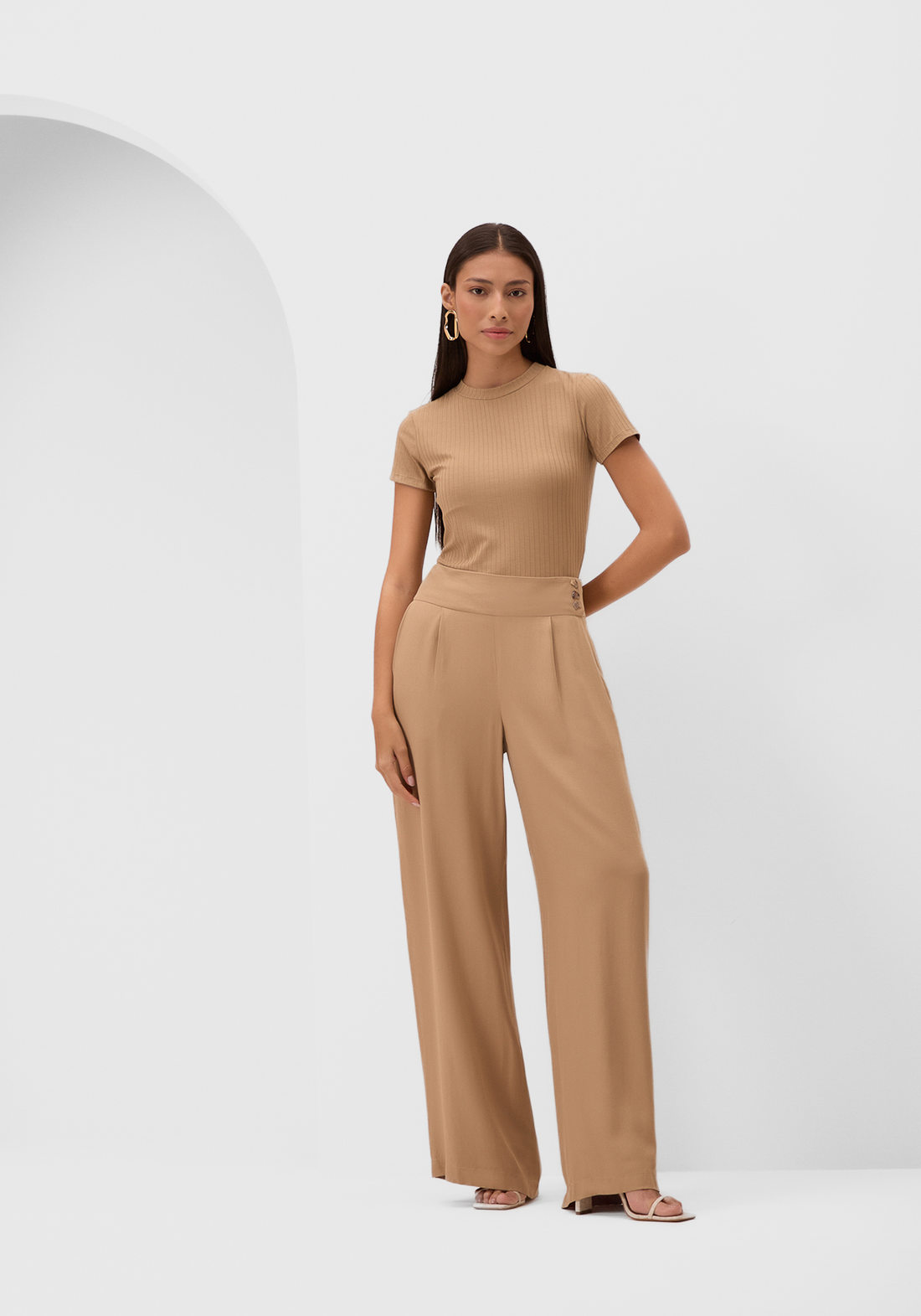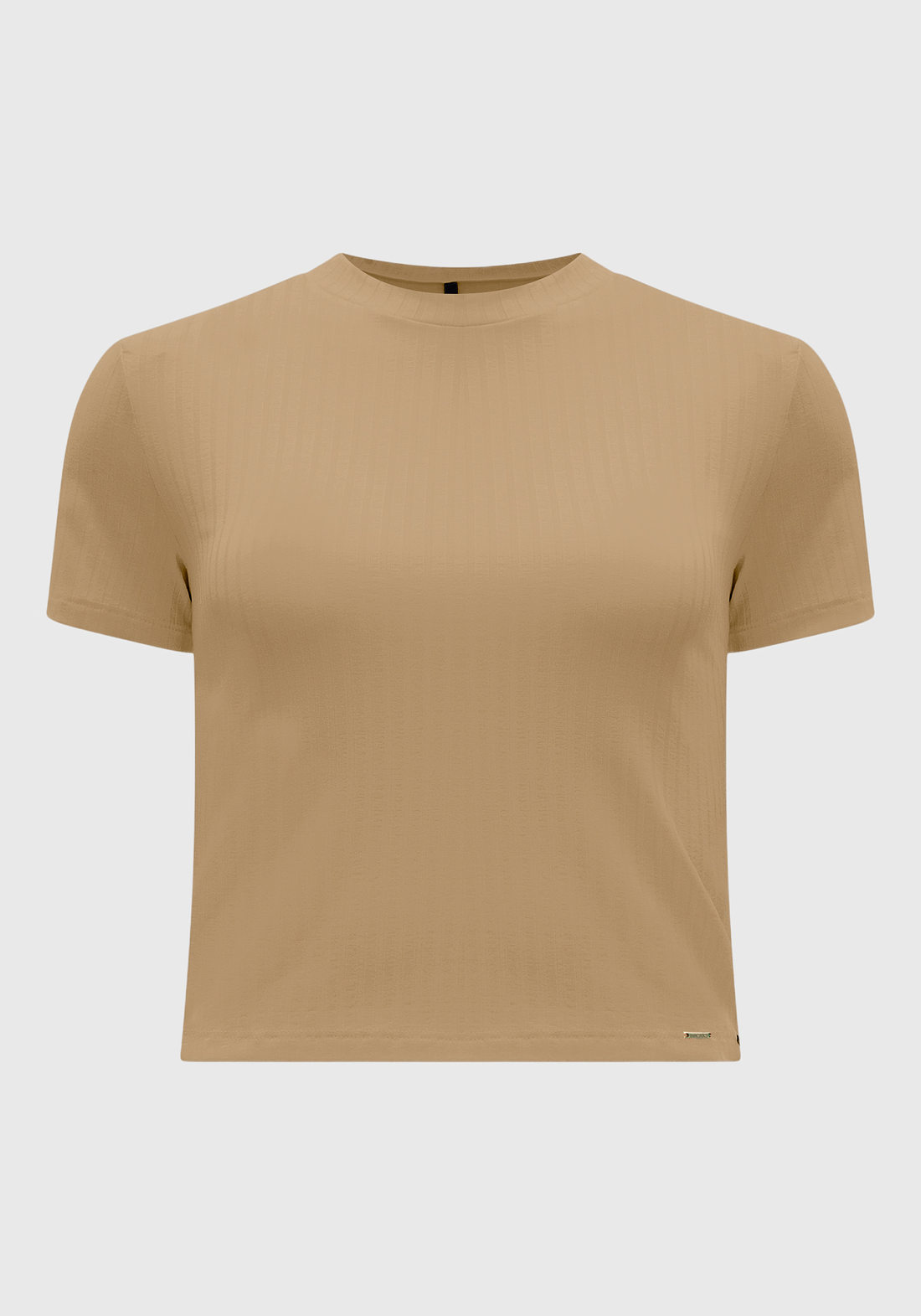 AdicionarBlusa Lunender Malha Canelada Gola Alta Manga Curta Básica Bege