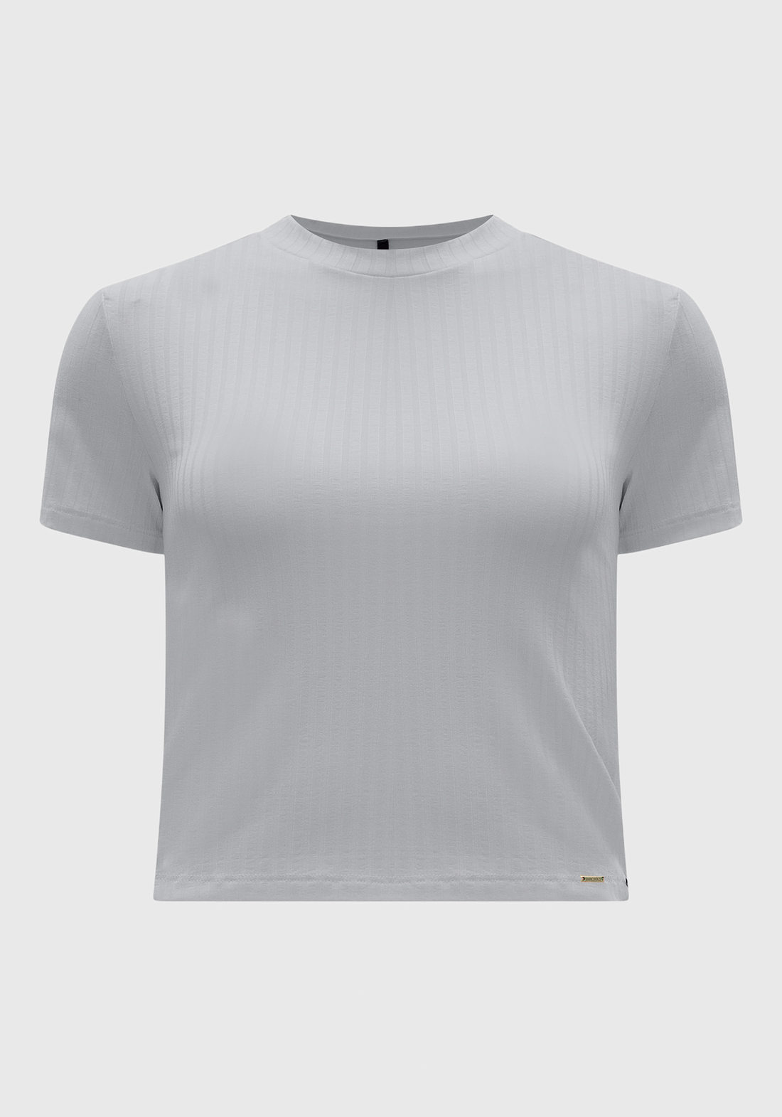 AdicionarBlusa Lunender Malha Canelada Gola Alta Manga Curta Básica Off White