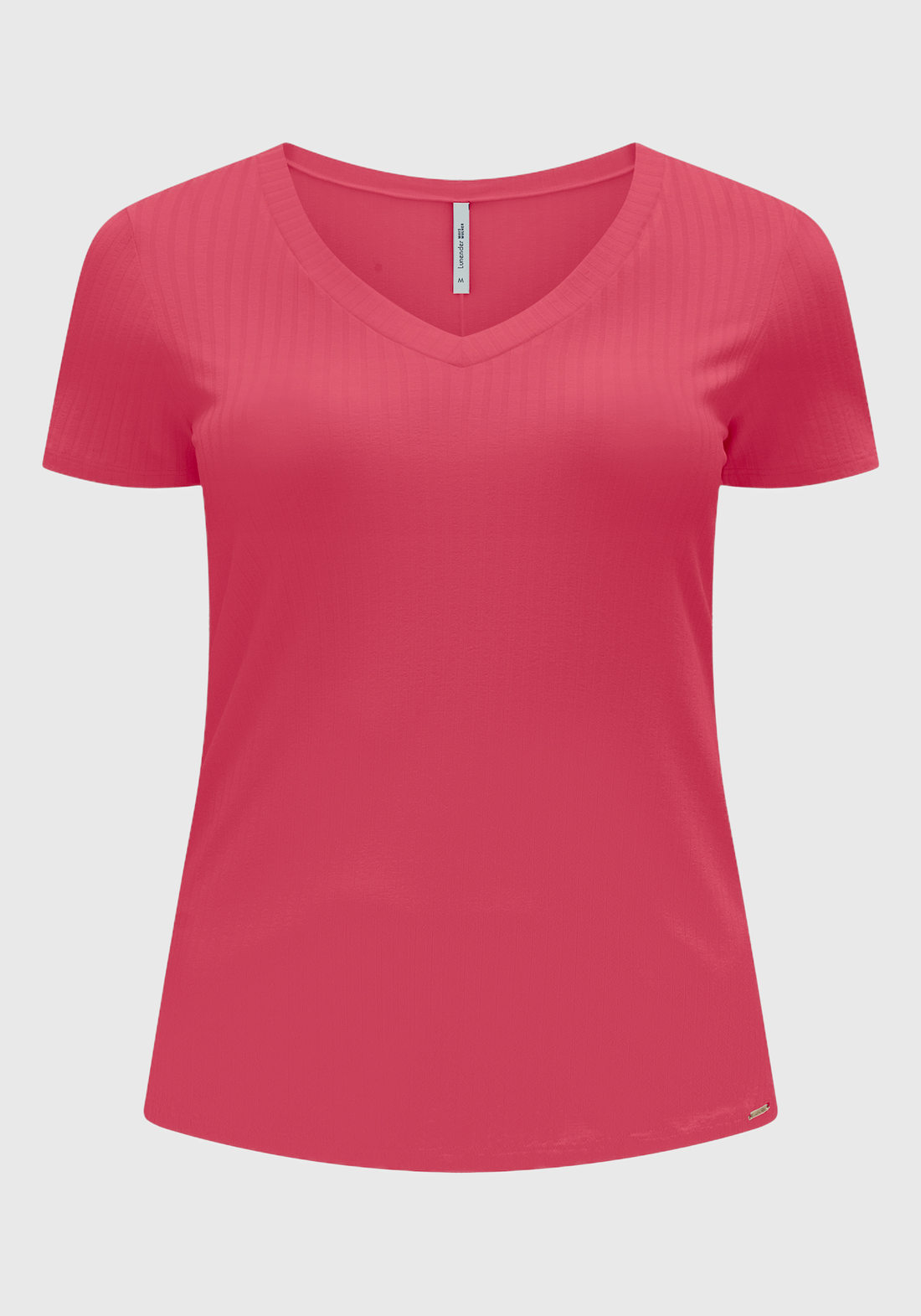 AdicionarBlusa Lunender Viscose Elastano Malha Canelada Decote V Manga Curta Básica Rosa