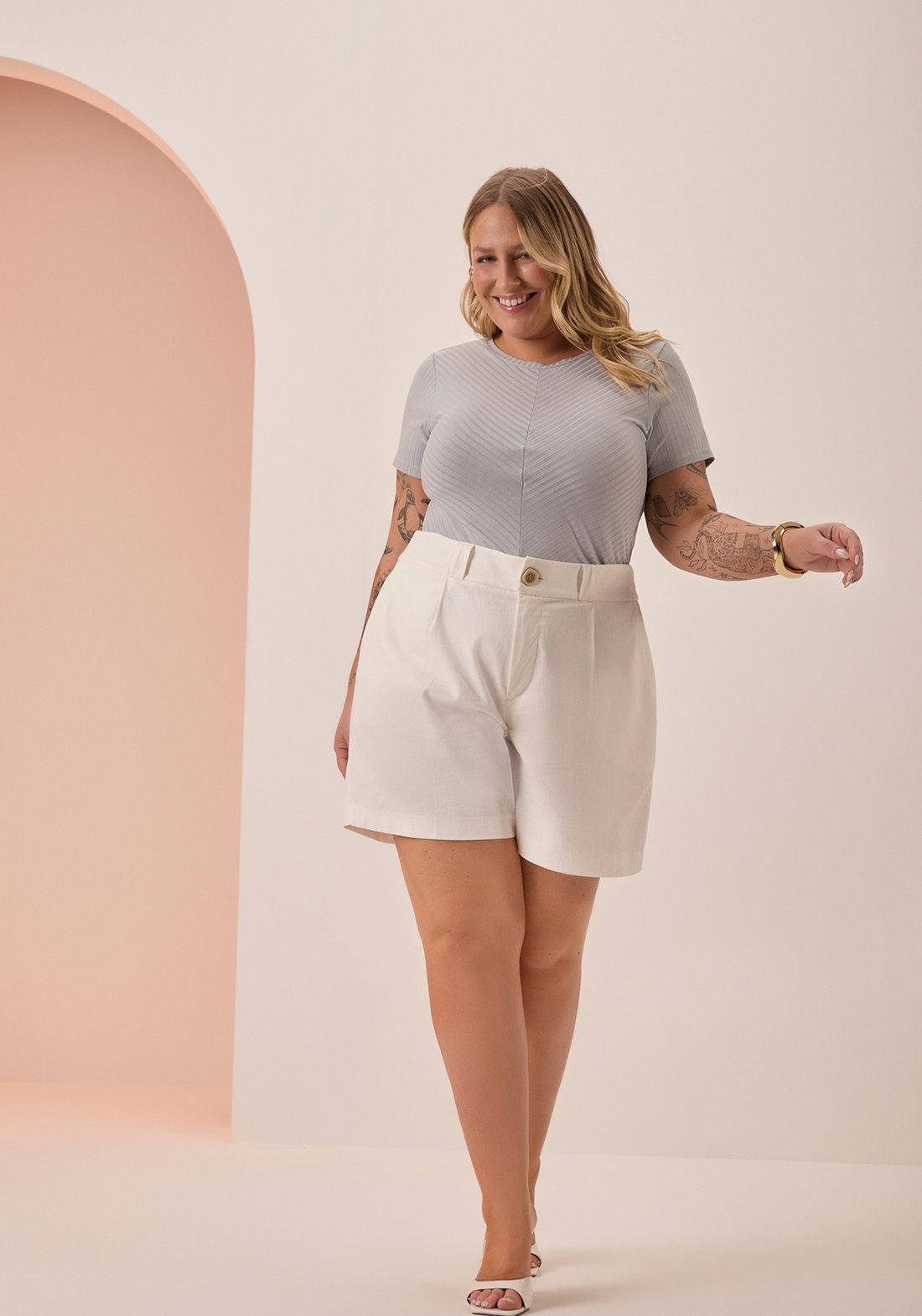 AdicionarBlusa Lunender Viscose Elastano Malha Canelada Manga Curta Básica Lisa Branco