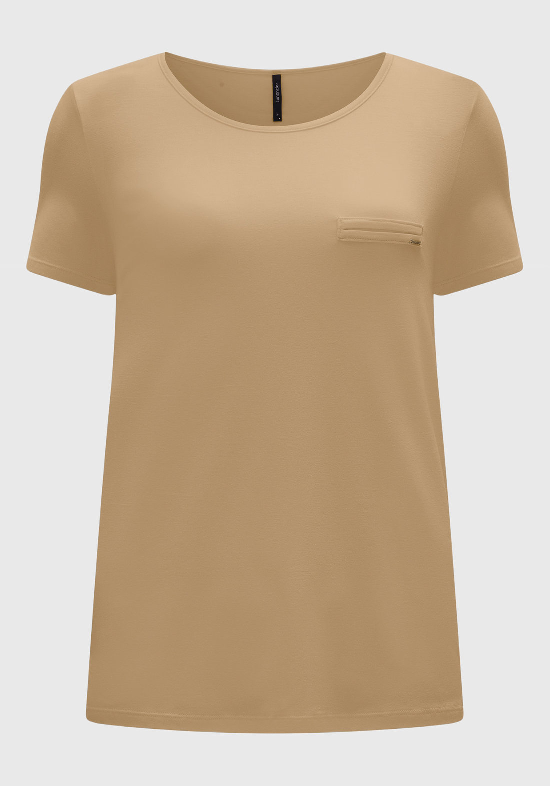 AdicionarBlusa Lunender Viscose Elastano Manga Curta Básica com Bolso Falso Aplicação Metal Logo Bege