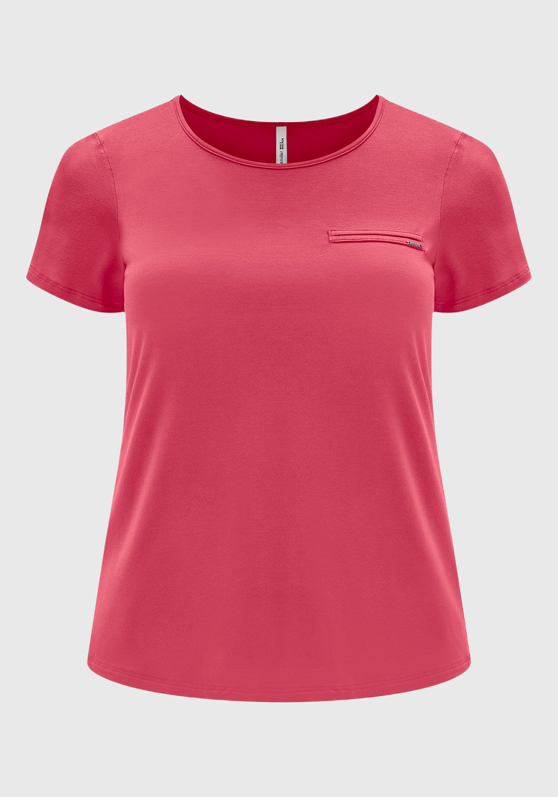AdicionarBlusa Lunender Viscose Elastano Manga Curta com Bolso Falso Aplicação Metal Logo Rosa