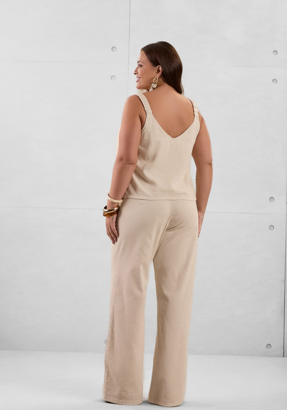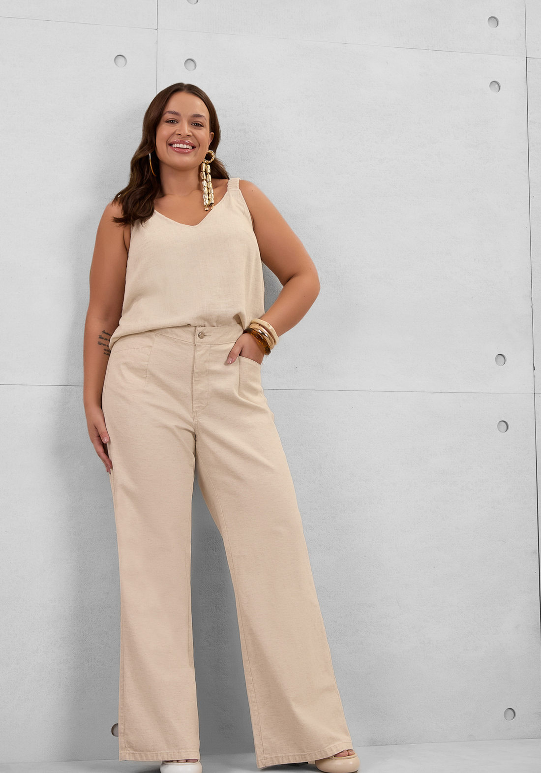 AdicionarCalça Lunender Wide Leg AVL Lisa Bolso Frontal Embutido Bege