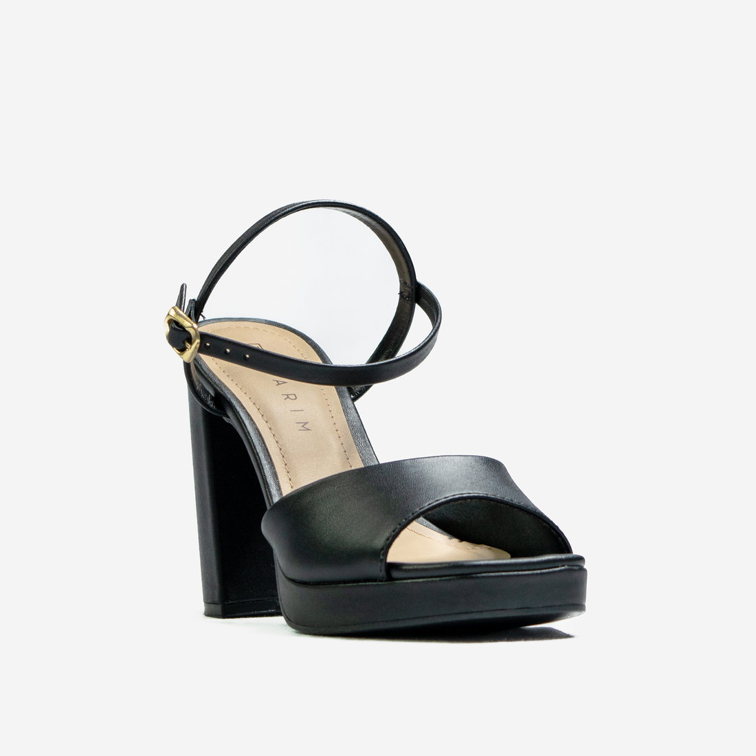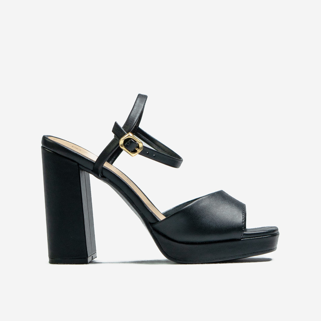 AdicionarSandália Ramarim Bico Quadrado Fechamento Fivela Salto Alto Grosso Preto