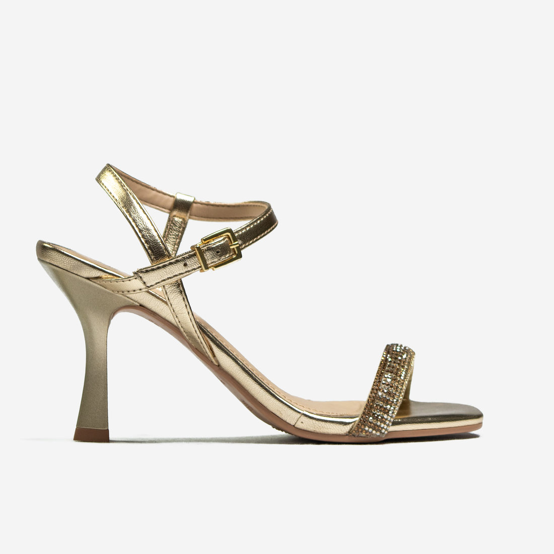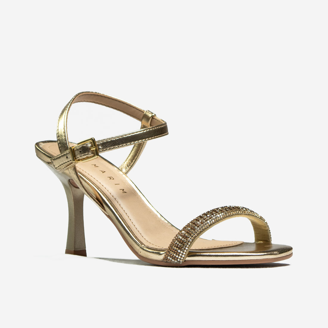 AdicionarSandália Ramarim Metalizada Tira Aplicação Strass Salto Médio Taça Dourado