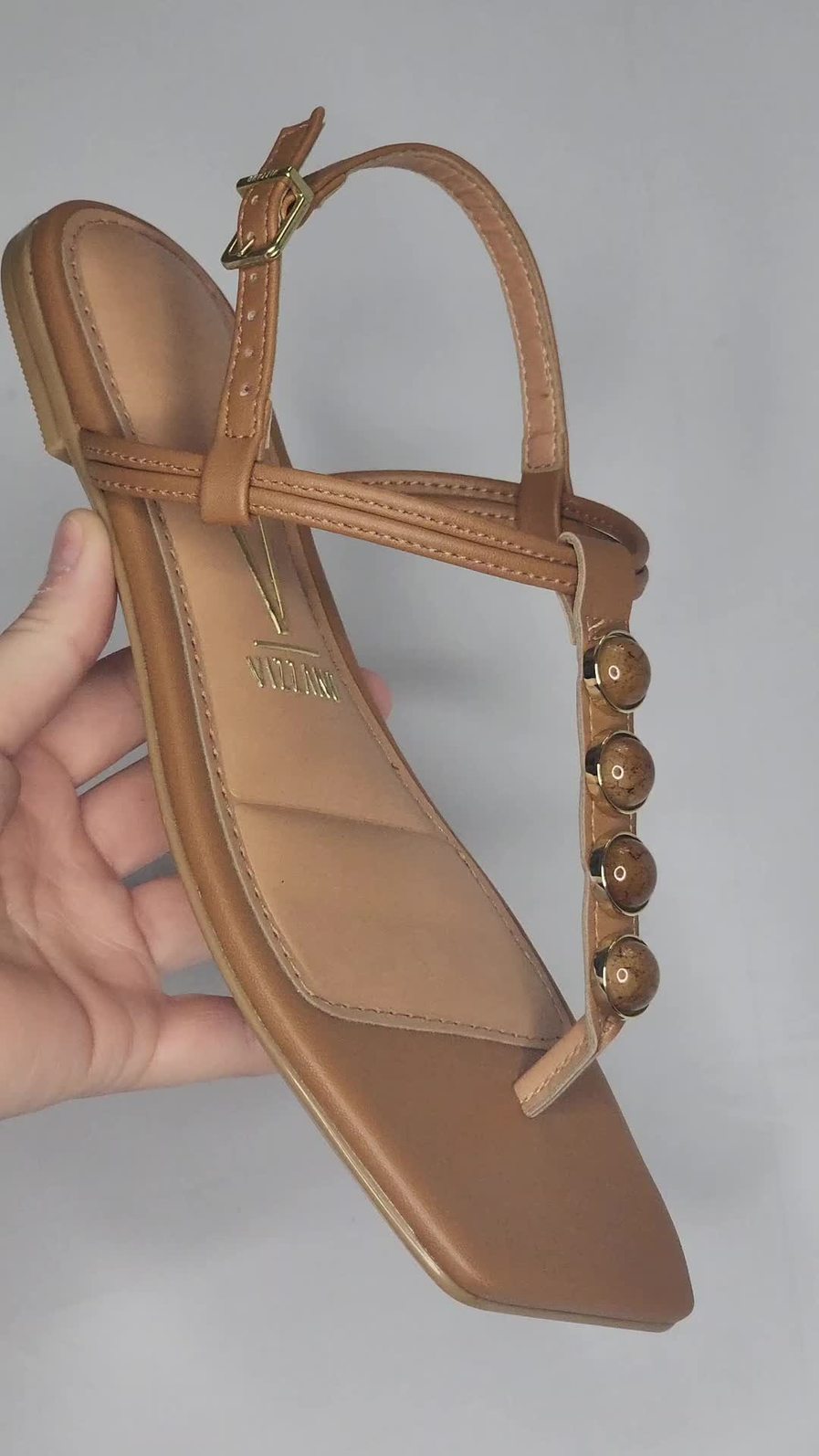 AdicionarSandália Vizzano Bico Quadrado Tira Detalhe Pedras Geométrica Fechamento Fivela Salto Rasteira Caram