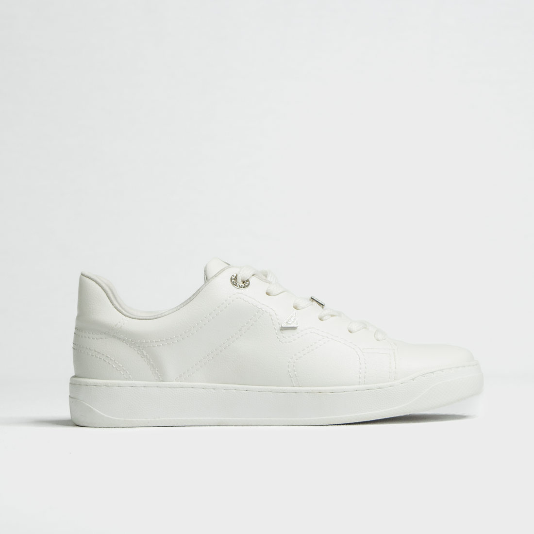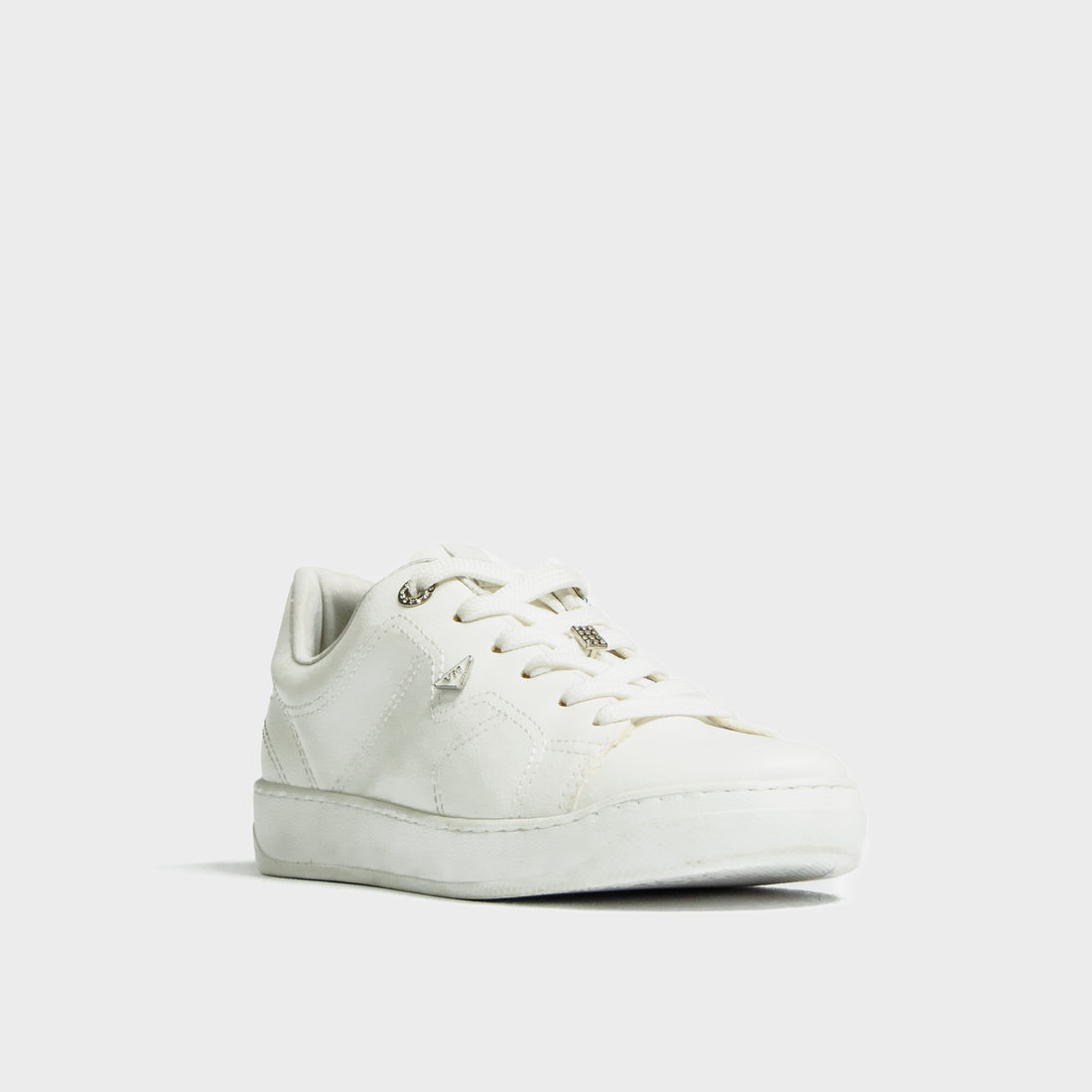 AdicionarTênis Via Marte Pesponto Aplicação Metal Logo Cadarço Detalhe Strass Branco